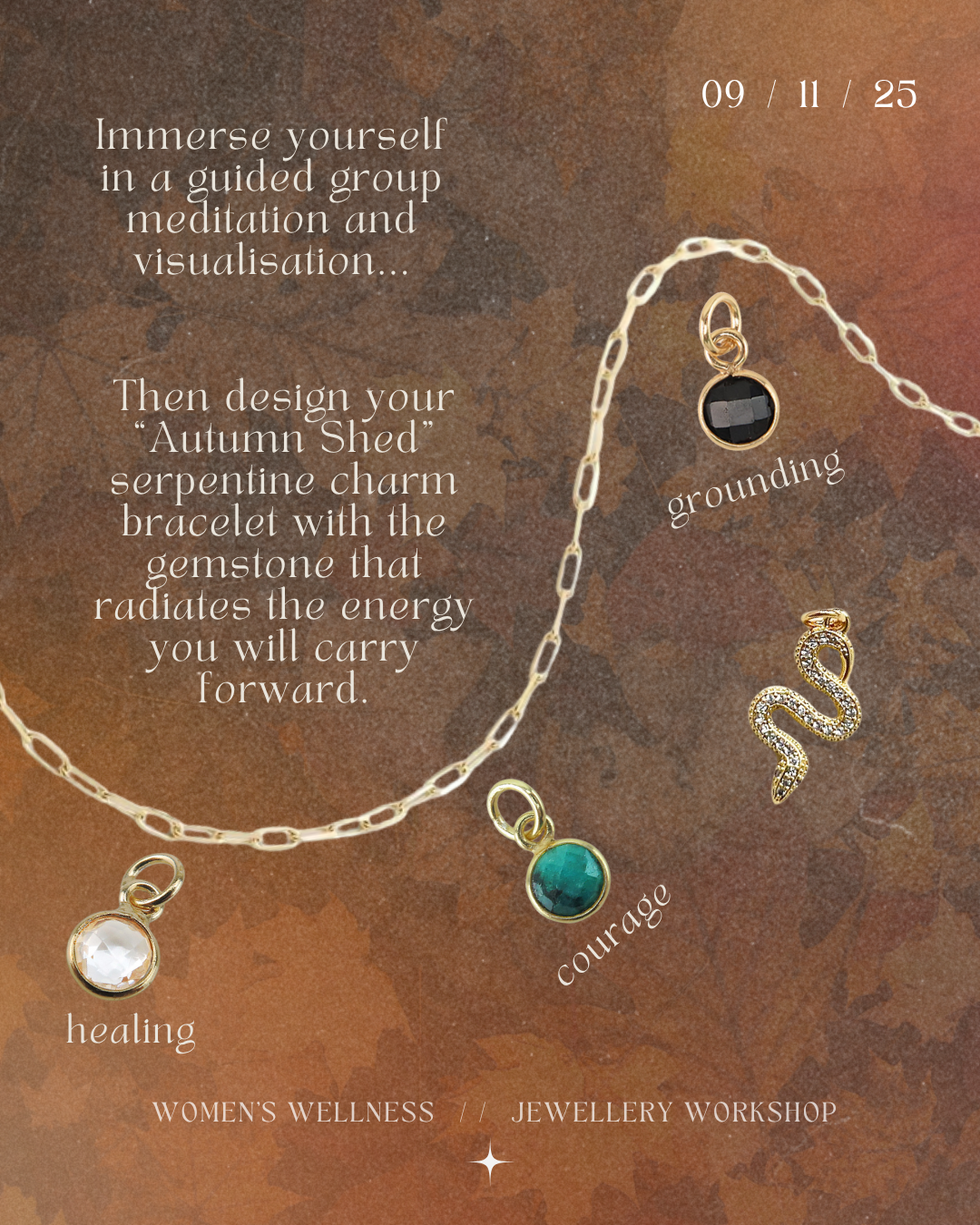 This intimate women’s circle blends wellness practices and the art of adornment, guiding you through a journey of shedding the old and embracing new intentions — all while creating a piece of jewellery infused with your personal energy.